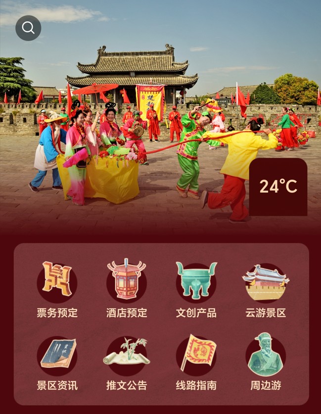 為滿足游客個性化需求,2023年底,智勝慧旅開始整合壽縣文化旅游資源,并在“智游壽州古城”公眾號打造云游壽州、票務預訂、智慧停車三個版塊,通過智能導游導覽、虛擬全景、路線規(guī)劃以及智慧系統(tǒng)服務,為游客提供“游前、游中、游后”全方位服務,真正實現(xiàn)“一部手機游壽州古城”。