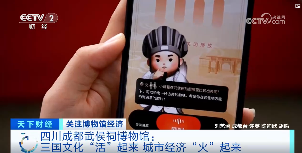 作為武侯祠博物館的首個時空伴游數(shù)智人,“小諸葛”可謂“火爆出圈”。在國際博物館日當天,央視財經頻道《天下財經》以“四川成都武侯祠博物館:三國文化‘活’起來 城市經濟‘火’起來”為題,重磅報道了武侯祠博物館的數(shù)智經濟、AI技術,展現(xiàn)文博領域的生機與活力。